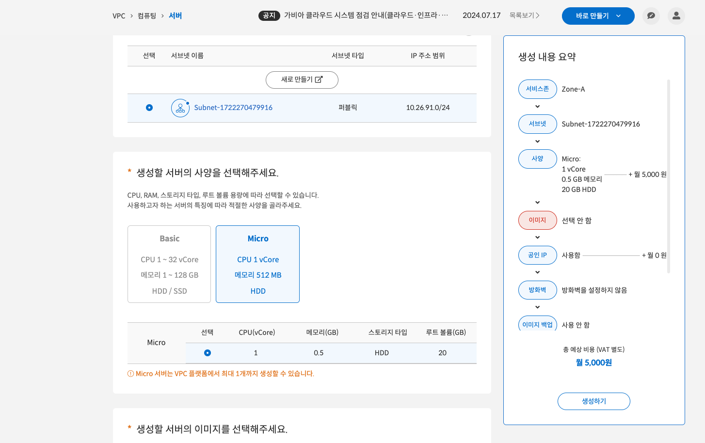 -> 서버 이미지, 운영체제는 Ubuntu 선택