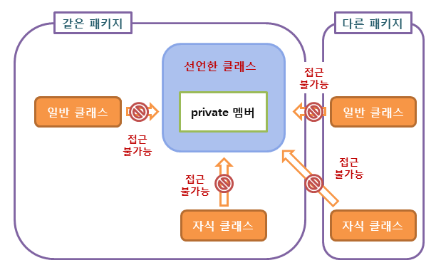 private: 같은 클래스 내에서만 접근이 가능하다.